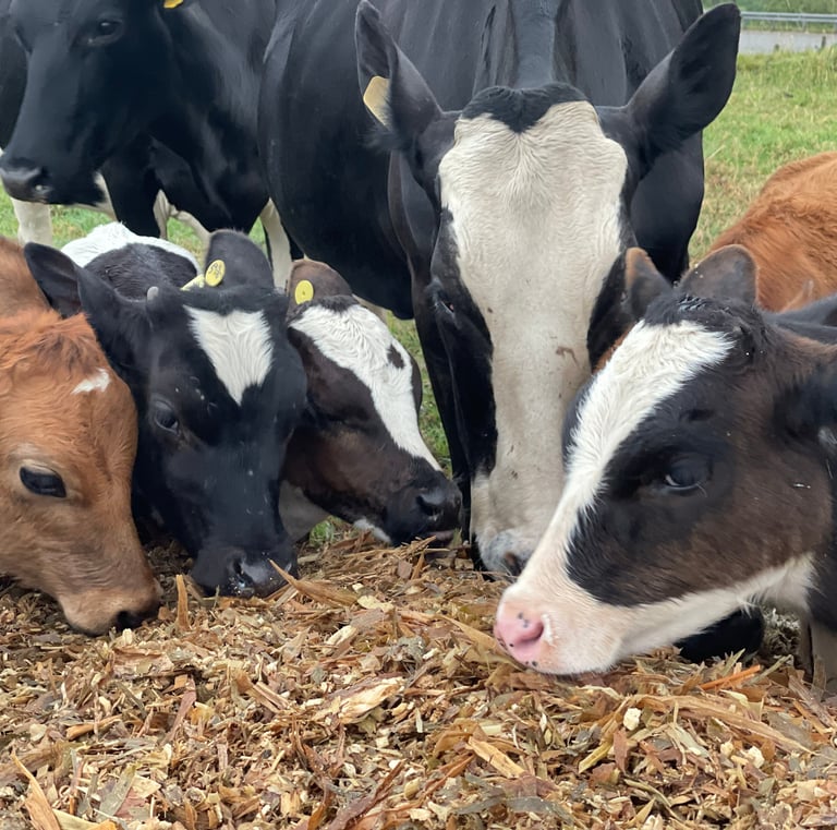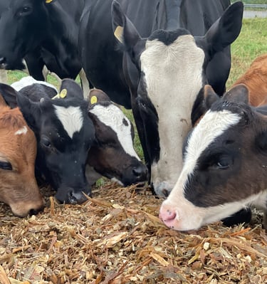 Dairy cows thriving on our organic feed supplement.